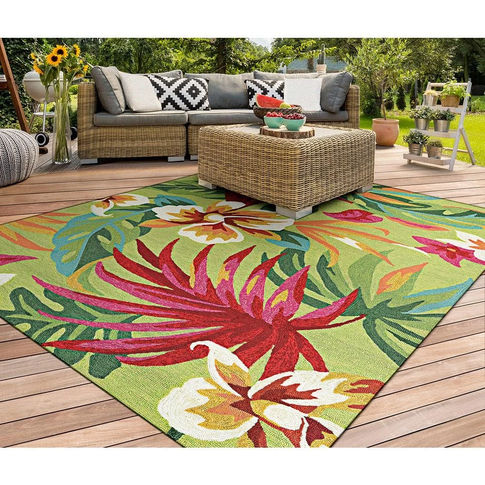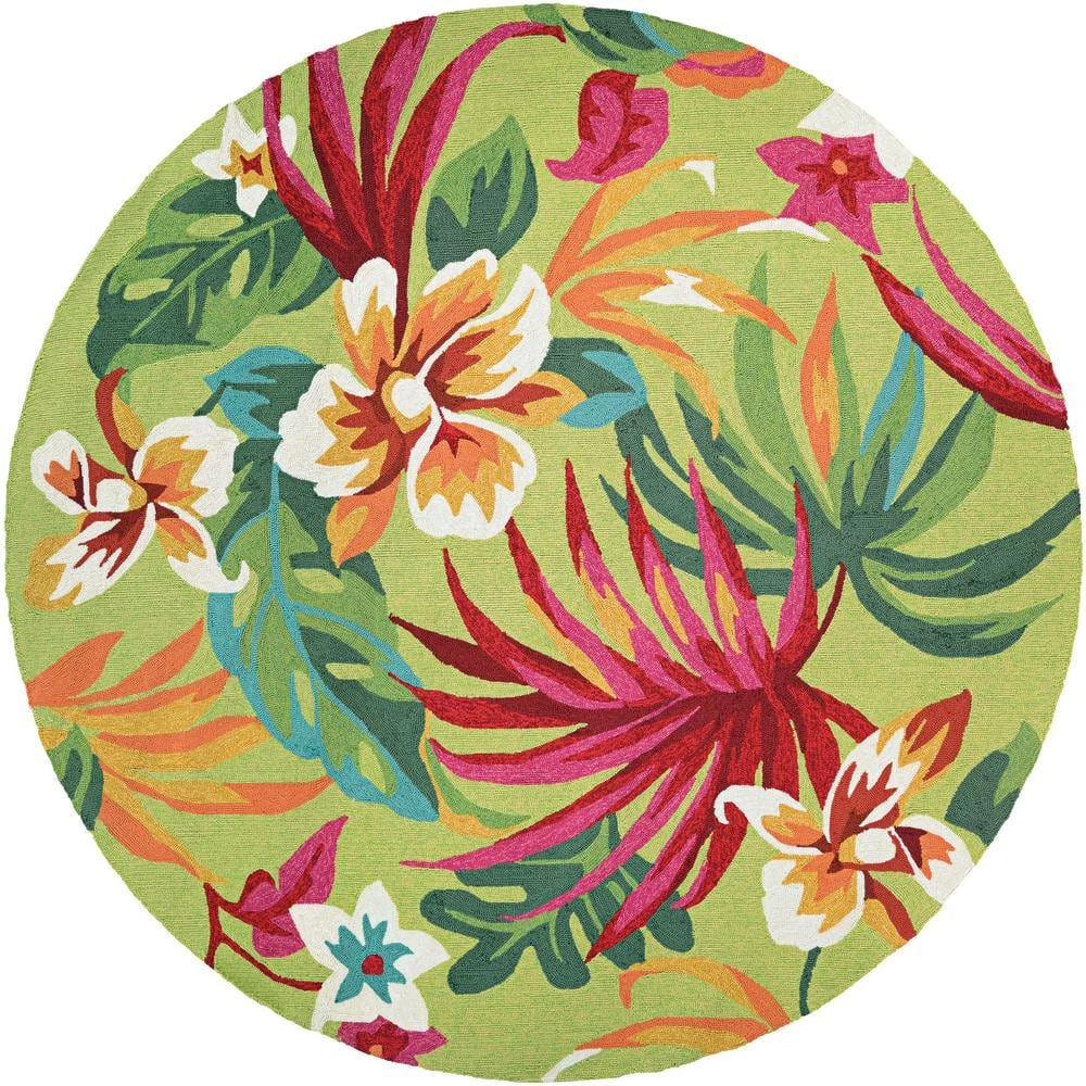 Accent your decor with the Couristan Covington Collection 8 ft. x 8 ft. Area Rug. This round rug is made with a modern style, keeping your space current and up-to-date. It has pet-friendly fabrics and features water-resistant materials. With a floral design, this hooked rug will add a natural accent to your room. It is designed with green elements, providing an eye-catching look for your home. This hooked rug has a 100% polypropylene construction, making it a durable choice with remarkable longevity.