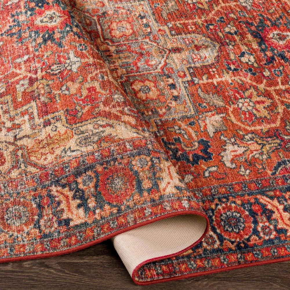 - Rubber backing, rug pad recommended