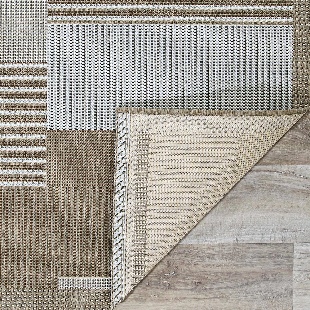 Tie your interior design together with the Couristan Monaco Collection 6 ft. x 9 ft. Area Rug. This flat woven rug has a transitional style, which complements any decor. It has UV stabilized fabrics and mildew-resistant materials. Designed with brown features, this rug will bring an earthy and neutral touch to any room. It has a geometric print, which creates a harmonious look that will instantly elevate your space. This rectangular rug has a 100% polypropylene construction, which makes it an incredibly durable choice for your home.