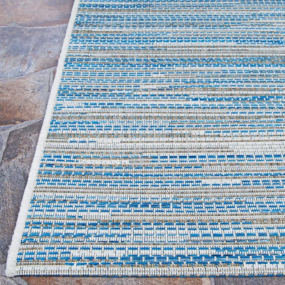 Effortlessly capturing the charm of the French Riviera, the Monte Carlo collection by Couristan, is uniquely designed for indoor and outdoor use. Monte Carlo offers a trendy coastal palette that will incorporate a resort feel to your desired space. Power-loomed in Belgium of the finest 100% fiber-enhanced Courtron polypropylene; this mildew resistant, UV stabilized, performance area rug collection features a structured flatwoven construction that is durable and easy to care for, making it ideal for busy and active areas. This collection’s flat weave pile lends itself for a seamless placement underneath furniture and in entryways. Monte Carlo is suitable for a variety of room or outdoor settings whether you’re looking to add a crisp, vibrant touch to your space of choice or create a fresh ambiance of travel and culture, Monte Carlo will be the perfect selection.