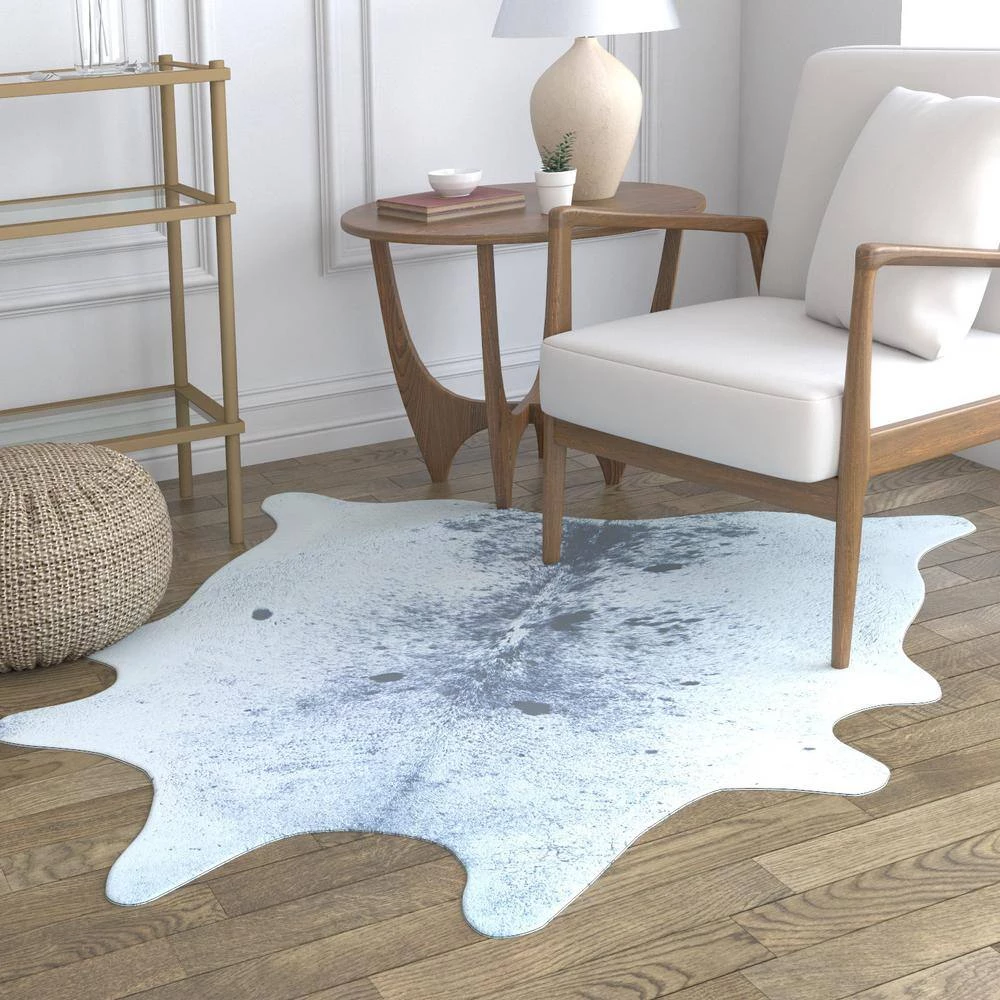 Featuring a 100% polyester machine-woven base with a cotton micro-suede backing, the Prairie Hides Collection offers the perfect decoration solution for minimalist inspired interiors. These digitally printed floor coverings emulate cowhide shaped area rugs and provide your decorating scheme with strong neutral foundations and small hints of color. The pristine digital printing of these hides is so realistic that it actually captures the true appearance of authentic hair-on cowhides. Colored foiled accents sensationalize the chic appearance of these realistic replicas and allow you to broaden your decorating scheme. Perfect for contemporary, Boho Chic, minimalist, western and southwestern decorating schemes, Prairie Hides provide you with an ethical-alternative when it comes to decorating with animal hides.
