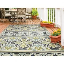 Covington Areca Palms Azure-Forest Green 6 ft. x 8 ft. Indoor/Outdoor Area Rug by Couristan