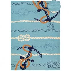 Outdoor Escape Anchorbend Ocean Blue 8 ft. x 8 ft. Round Indoor/Outdoor Area Rug by Couristan