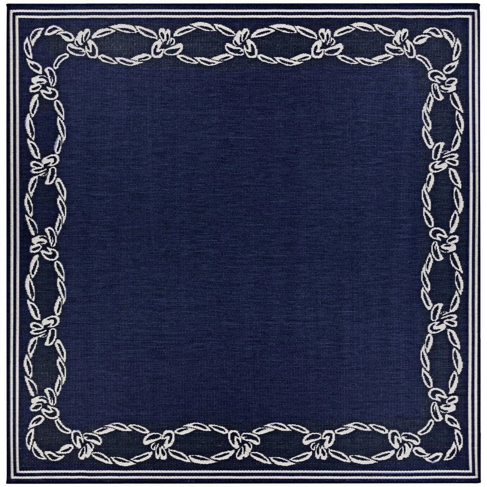 Bring in texture to your home to create a warm and cozy feeling with this Couristan Recife Collection 9 ft. x 9 ft. Area Rug. This flat woven rug has a transitional style, which blends in with any decor. It has pet-friendly fabrics and mildew-resistant materials. It is designed with blue elements, upgrading the color scheme of the room with a cool touch. With a novelty motif, this flat woven rug will show your quirky side. This area rug makes a perfect present to delight your family and friends. It features a 100% polypropylene construction, which will resist fading over time.
