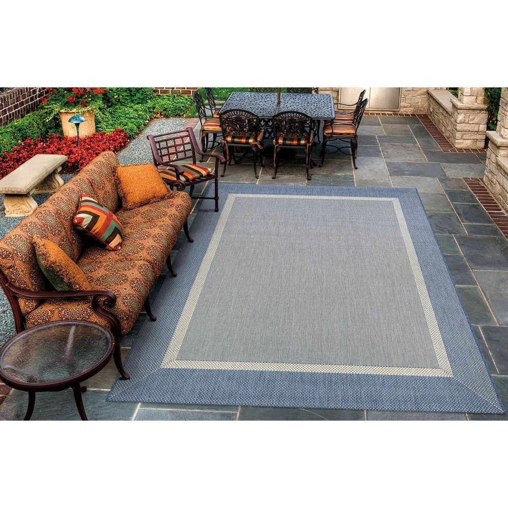 Add charm and personality to your room with the Couristan Recife Collection 9 ft. x 9 ft. Area Rug. This square rug has a transitional style, which complements any decor. It features pet-friendly fabrics and mildew-resistant materials. It is designed with elements of blue, boosting the color scheme of the space. With a 100% polypropylene construction, this square rug is an extremely durable choice for your home.