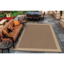 Recife Saddle Stitch Champagne-Taupe 8 ft. x 8 ft. Square Indoor/Outdoor Area Rug by Couristan